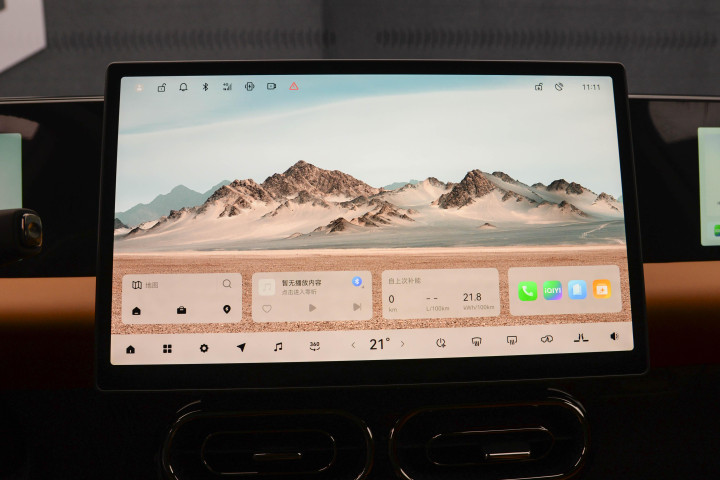零跑C01内饰里面的大屏是主角,细节有加分也有槽点 ;官方把这种内饰设计风格叫做 “T 型极简”,说白了就是能砍的物理按键都砍了,空调出风口也做成了隐藏式的。我认为驼绒棕内饰看着确实显档次,就是不太耐脏,特别容易沾指纹,得经常擦。