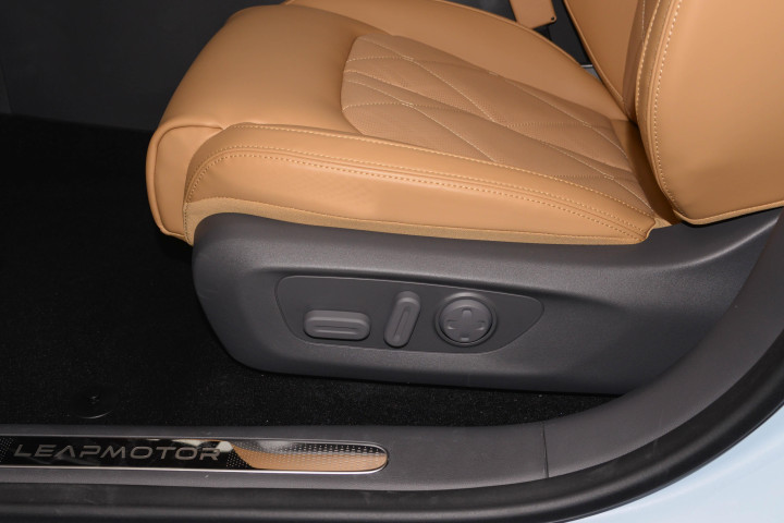 零跑C01部分高配车的前排用的是多层夹胶玻璃,电机还做了声学包处理,在 60km/h 以内,基本听不到电机的声音,车内很安静;但车速到 80km/h 之后,胎噪就比较明显了,会成为车内噪音的主要来源。